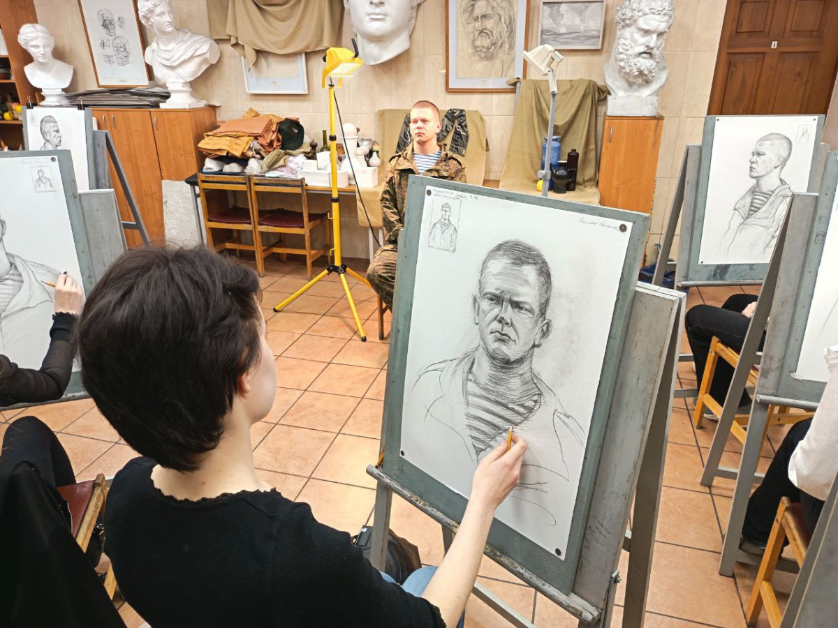 Портреты наших "штурмов"Детская художественная школа города Пскова активно включилась в программу портретных зарисовок участников специальной военной операции. Напомним, что предыдущая тема, с которой наши ученики блестяще справились, были портреты ветеранов Великой Отечественной войны 1941-1945 гг. Была создана целая галерея образов воинов-героев. На этот раз к нам для позирования пришли воины 76 Десантно-штурмовой дивизии базирующейся в нашем городе. Все они горят желанием вернуться снова в зону военных действий. Во время нашей работы, все кто их рисовал, поражались спокойствию, терпению, усидчивости этих ребят. Ведь нужно было неподвижно сидеть в течение нескольких часов. Кто-то из них был невероятно молчалив, а кто-то, во время позирования, рассказывал о своей воинской работе, как воевал, когда был ранен... Как правило, о своих ранениях или боевых подвигах они говорили спокойно, с чувством собственного достоинства. И мы, рисуя этих ребят, гордились ими. Мы понимали, что соприкасаемся с чем-то глубоко сокровенным и личным. Можно смело сказать, что наши ученики получили глубокий урок о том, что такое Родина, служение ей, фронтовое братство, воинская честь... Наверное, поэтому многие рисунки-портреты, сделанные нашими учениками, получились такими честными, правдивыми и проникновенными. Наш проект продолжается. Еще будет много открытий, удивительных историй и, конечно, выставок портретов людей, с которыми мы успели подружиться.